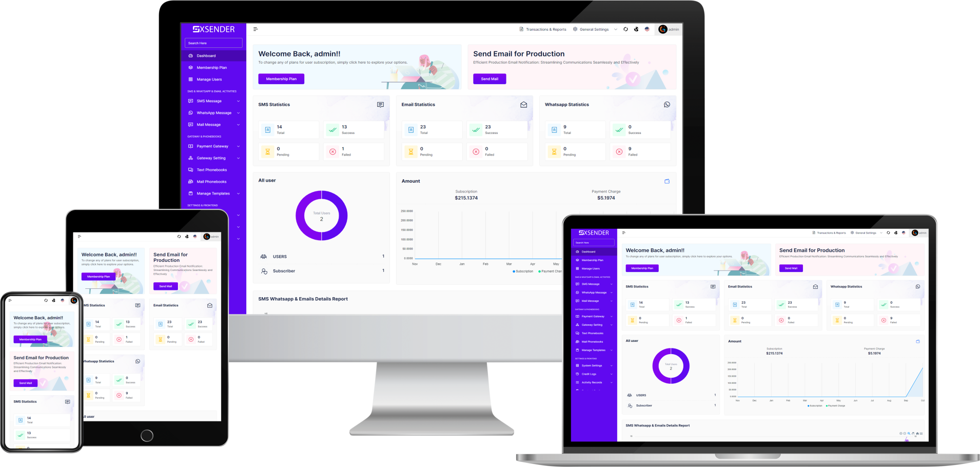 Descubra una solución SaaS potente y versátil diseñada para administrar sin problemas los canales de comunicación. Nuestra plataforma integral combina las fortalezas de los SMS, el correo electrónico y WhatsApp masivos, lo que garantiza un enfoque de mensajería eficiente y unificado, que satisface las diversas necesidades de comunicación con facilidad.